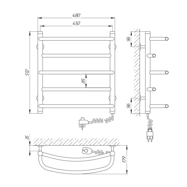 Рушникосушка електрична Laris Євромікс П5 450 М х 500 В (праве) (73207025) 73 207 675