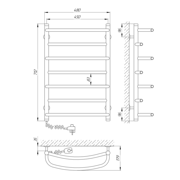 Полотенцесушитель электрический Laris Евромикс П7 450 М х 700 В (73207096) (подкл. слева)