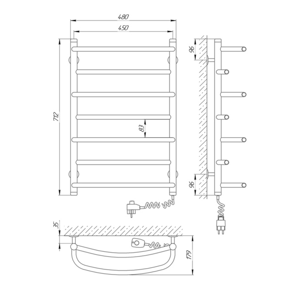 Полотенцесушитель электрический Laris Евромикс П7 450 М х 700 В (73207027) (правый)