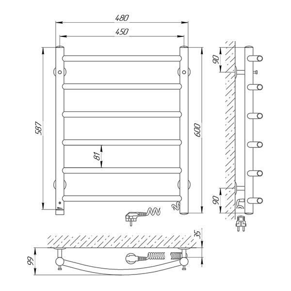 Рушникосушка електрична Laris Класік П6 450 М х 600 В (праве) (73207003) 73 207 724