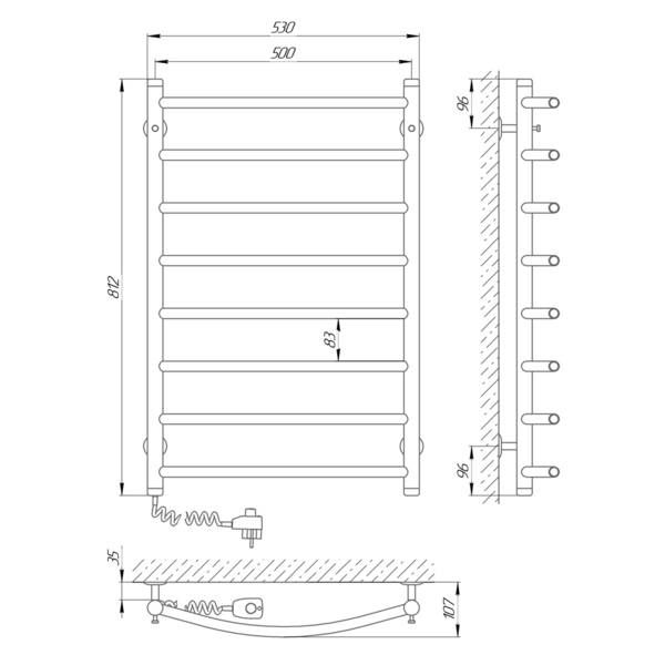 Полотенцесушитель электрический Laris Классик П8 500 М х 800 В (73207052) (подкл. слева)