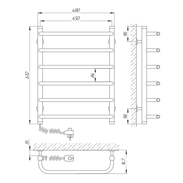 Рушникосушка електрична Laris Стандарт П6 450 М х 600 В (ліва) 73 207 084