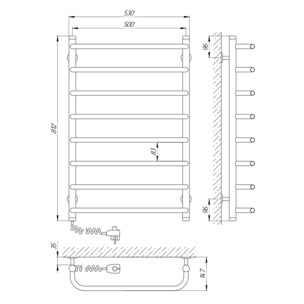 Полотенцесушитель электрический Laris Стандарт П8 500 М х 800 В (73207088) (подкл. слева)