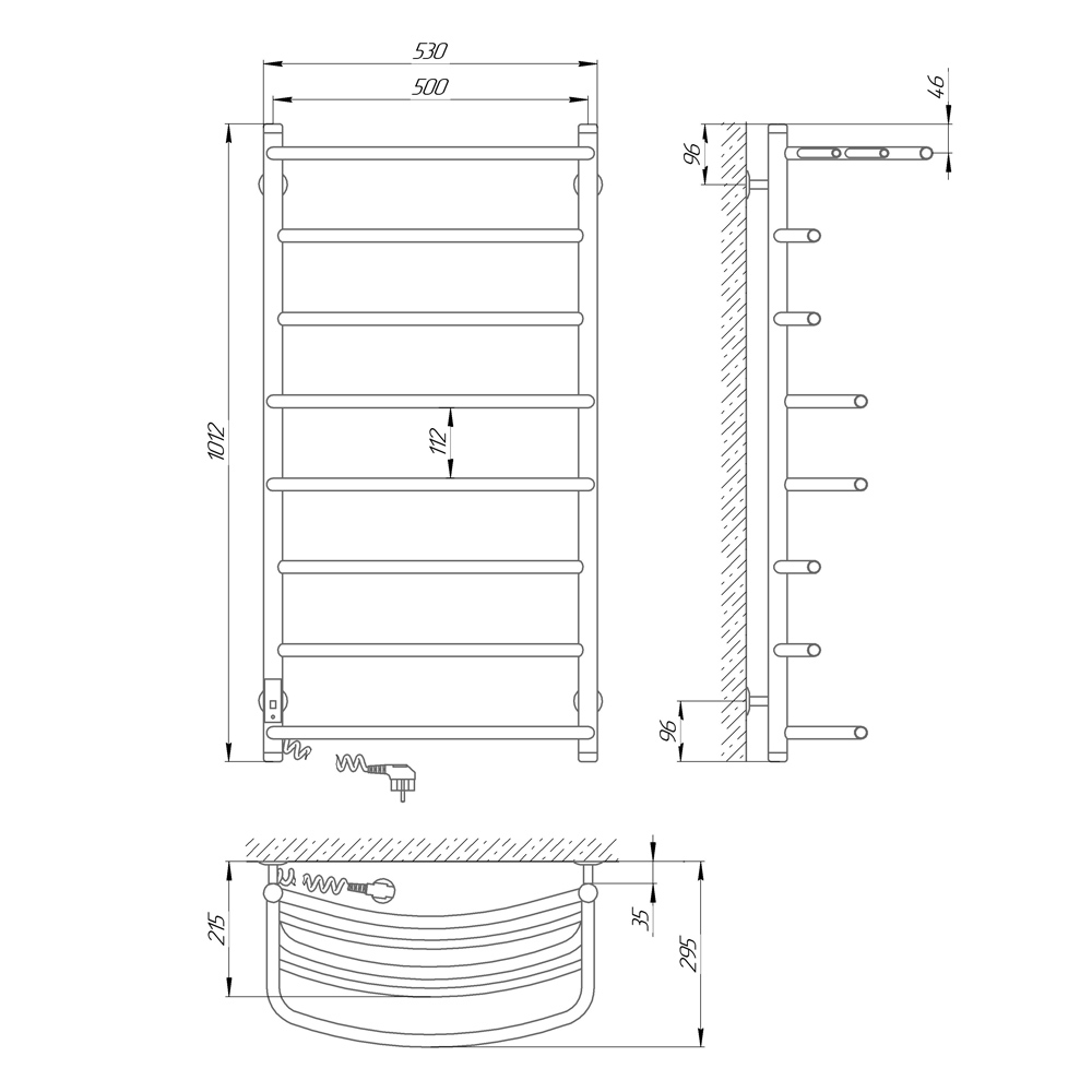 Полотенцесушитель электрический Laris Еврофлеш П8 500 М х 1000 В (73207414) (подкл. слева) с полкой