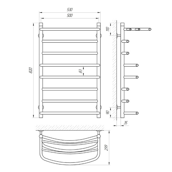 Полотенцесушитель водяной с полкой Laris Евромикс П8 500 М х 800 В (71207600)