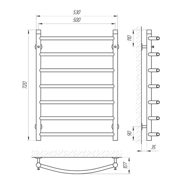 Полотенцесушитель водяной Laris Классик П7 500 М х 700 В (71207506) (1/2" внутреннее)
