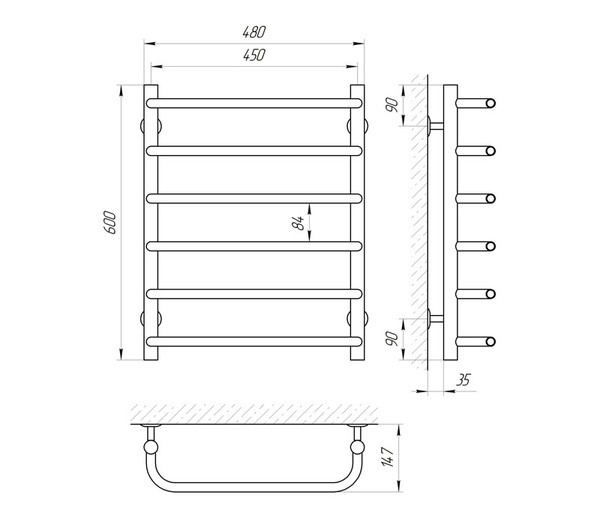 Полотенцесушитель водяной Laris Стандарт П6 450 М х 600 В (71207061)
