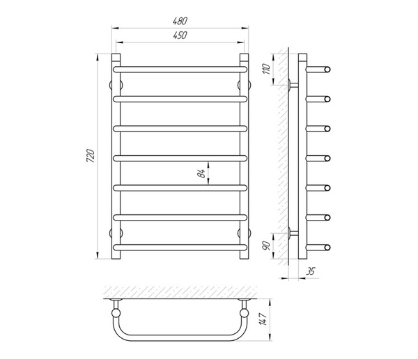 Полотенцесушитель водяной Laris Стандарт П7 450 М х 700 В (71207548)