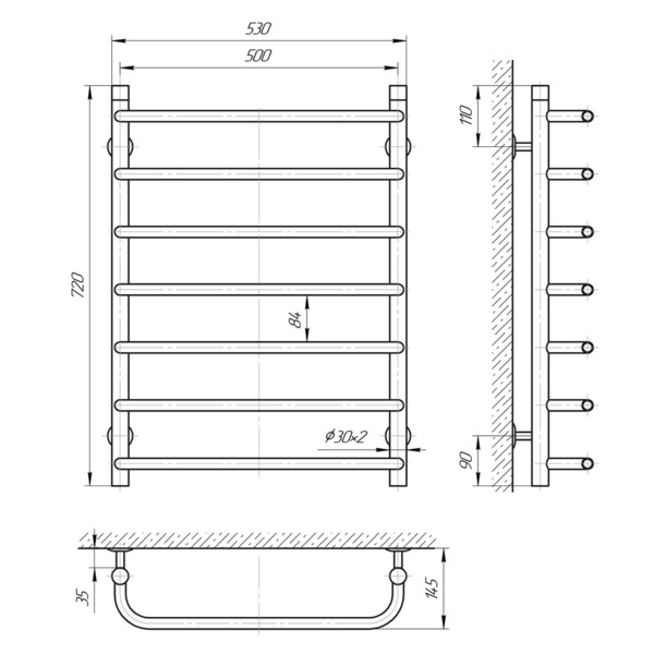 Диаметр: стойка Ø30, толщина 2 мм; перемычка Ø20, толщина 1,5 мм
