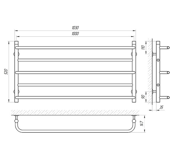 Полотенцесушитель водяной Laris Практик П5 1000 М х 500 В (71207666)