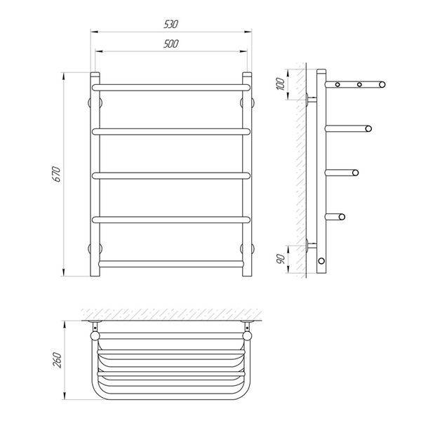 Полотенцесушитель водяной Laris Стандарт П5 500 М х 660 В (71207066) с полкой