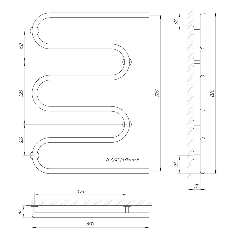 Резьба: 3/4" внешняя