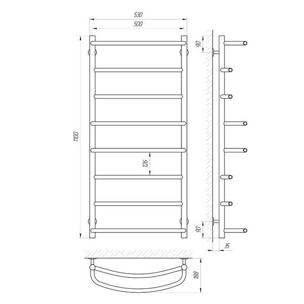 Полотенцесушитель водяной Laris Еврофлеш П8 500 М х 1100 В (74100018)