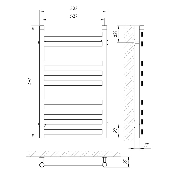 Диаметр: стойка Ø30, толщина 2 мм; перемычка □ 30х10, толщина 1,5 мм
