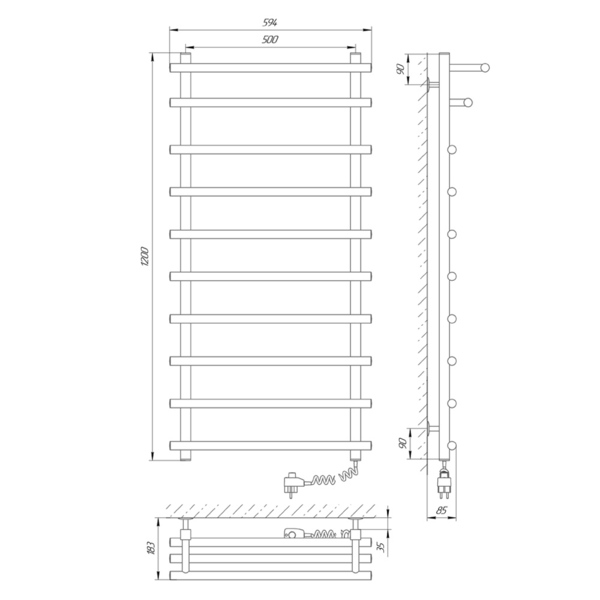 Полотенцесушитель электрический Laris Каскад Премиум П10 500 М х 1200 В (73207369) (подкл. справа)