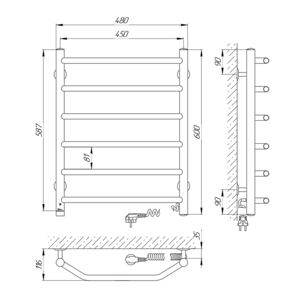Полотенцесушитель электрический Laris Виктория П6 450 М х 600 В (73207015) (подключ. справо)