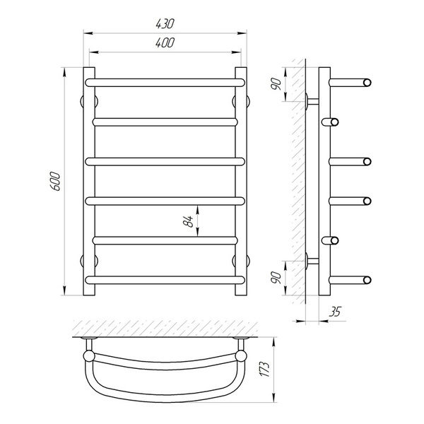 Диаметр: стойка Ø30, толщина 2 мм; перемычка Ø20, толщина 1,5 мм
