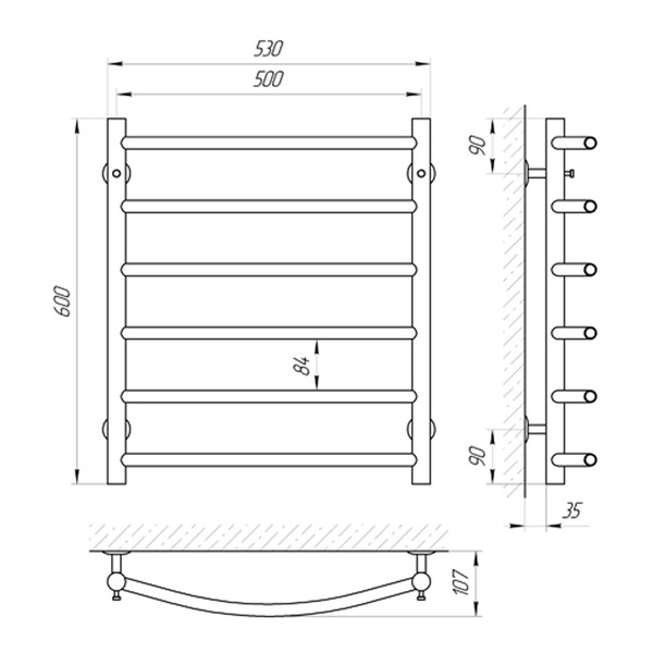 Полотенцесушитель водяной Laris Классик П6 500 М х 600 В (71207481) (1/2" внутреннее)