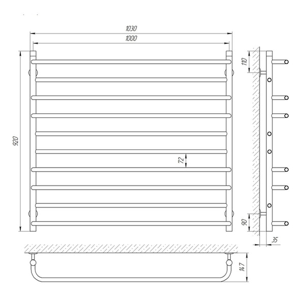 Полотенцесушитель водяной Laris Практик П10 1000 М х 900 В (71207667)