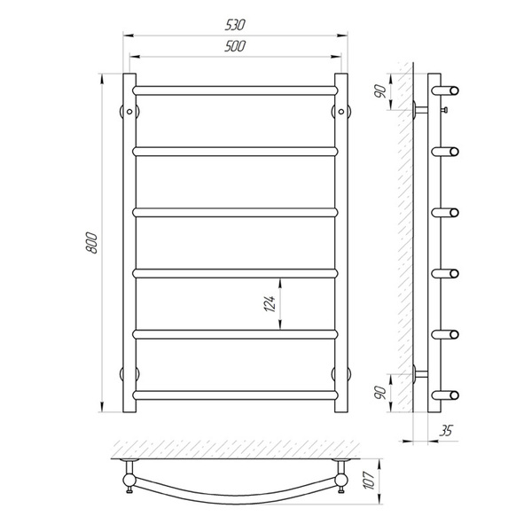 Полотенцесушитель водяной Laris Флеш П6 500 М х 800 В (74100002)