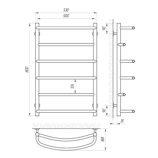 Полотенцесушитель водяной Laris Еврофлеш П6 500 М х 800 В (74100016)